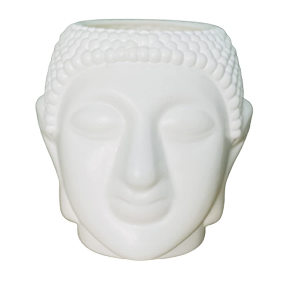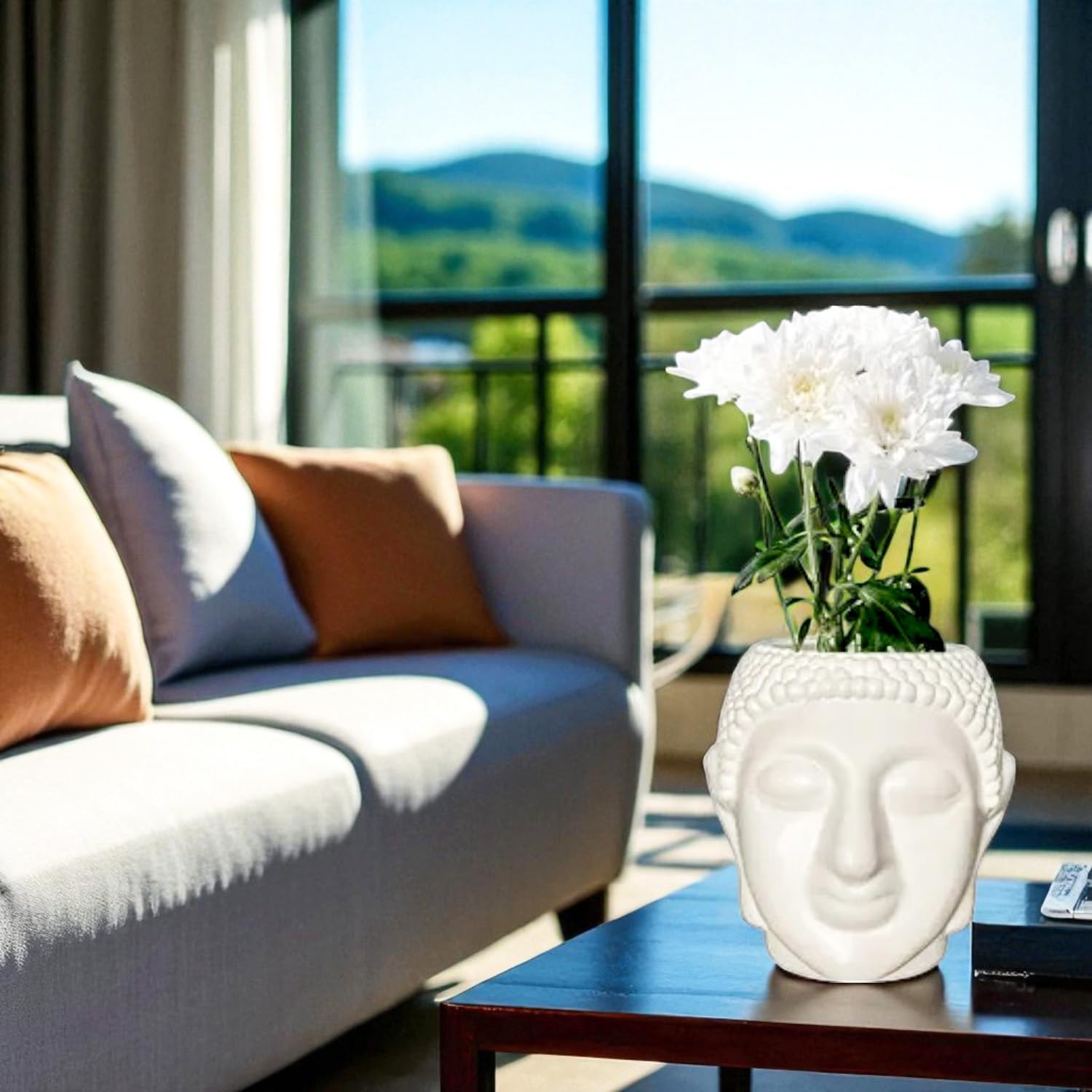 Elegant Buddha face planter pot crafted from durable plastic material, perfect for adding a serene and decorative touch to your space.